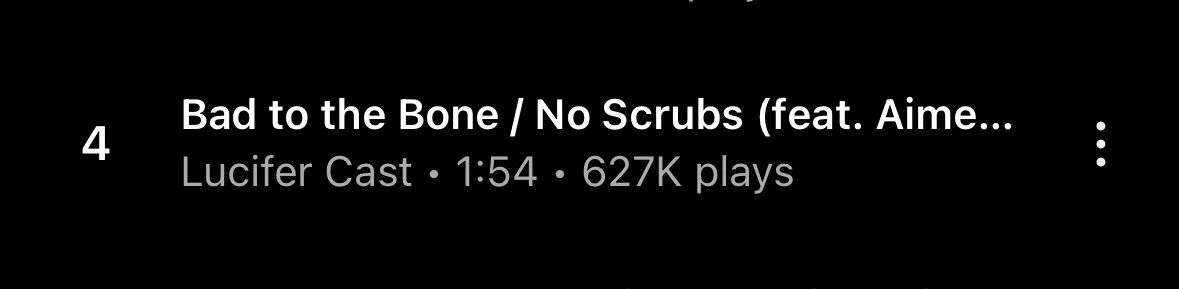 I don’t know anything about the TV Show Lucifer, where Lucifer roams modern day earth running nightclubs and helping the LAPD solve murders, other than it sounds like a made-up show a moron in a sitcom would love in an episode subplot. I also, more pressingly, have no idea why the fuck it has an official cast cover of I Dreamed A Dream out on streaming services. Did they do all of Les Miserables for a charity album or something? They really give no weight at all to most of the song, and definitely give nothing to the last verse at all, so I gotta imagine they were doing this for fun in the name of a good cause. Actually, I’m gonna go look at what else is on it, one sec.